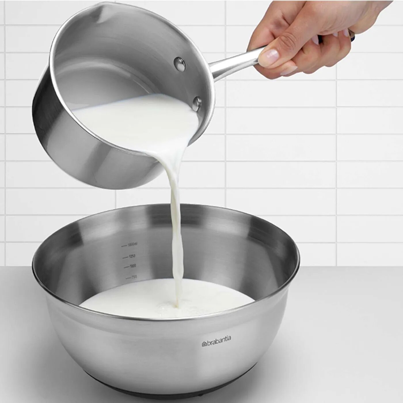 Салатник "Brabantia" изготовлен из высококачественной нержавеющей стали с матовой полировкой. Мягко изогнутые края специально разработаны для комфортного смешивания, а измерительная шкала на внутренней поверхности чаши позволит точно смешивать ингредиенты. Силиконовое основание придает миске устойчивости и предотвращает повреждение поверхности стола.