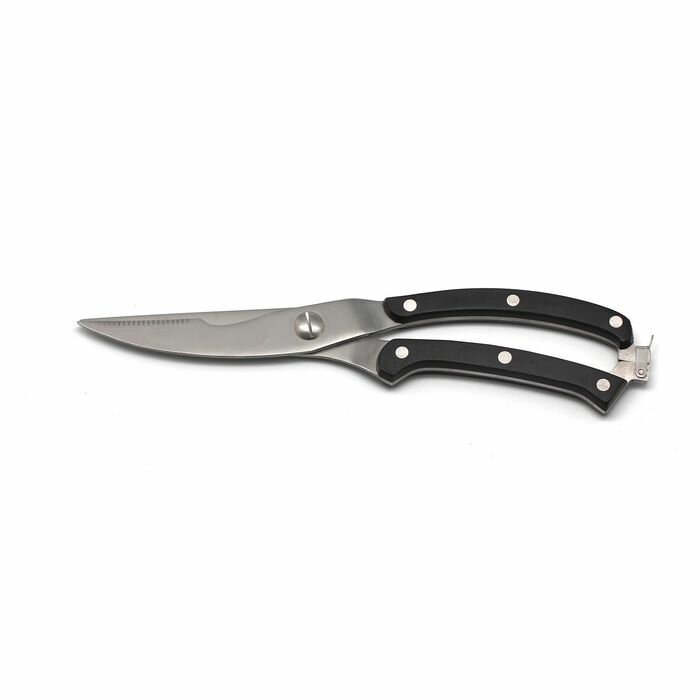 Такие кухонные ножницы отлично подходят как для любителя вкусно готовить, так и профессионального шеф-повара. Конструкция с удобной эргономичной ручкой и тремя надёжными заклёпками обеспечивает комфортную и безопасную нарезку продуктов. Высококачественная немецкая нержавеющая сталь не нуждается в частой заточке и обладает устойчивостью к коррозии. Оформление в классическом стиле отлично сочетается с интерьером любой кухни.