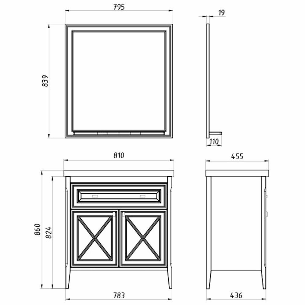 - Габариты тумбы (ШxВxГ): 78,3x82,4х43,6 см.
