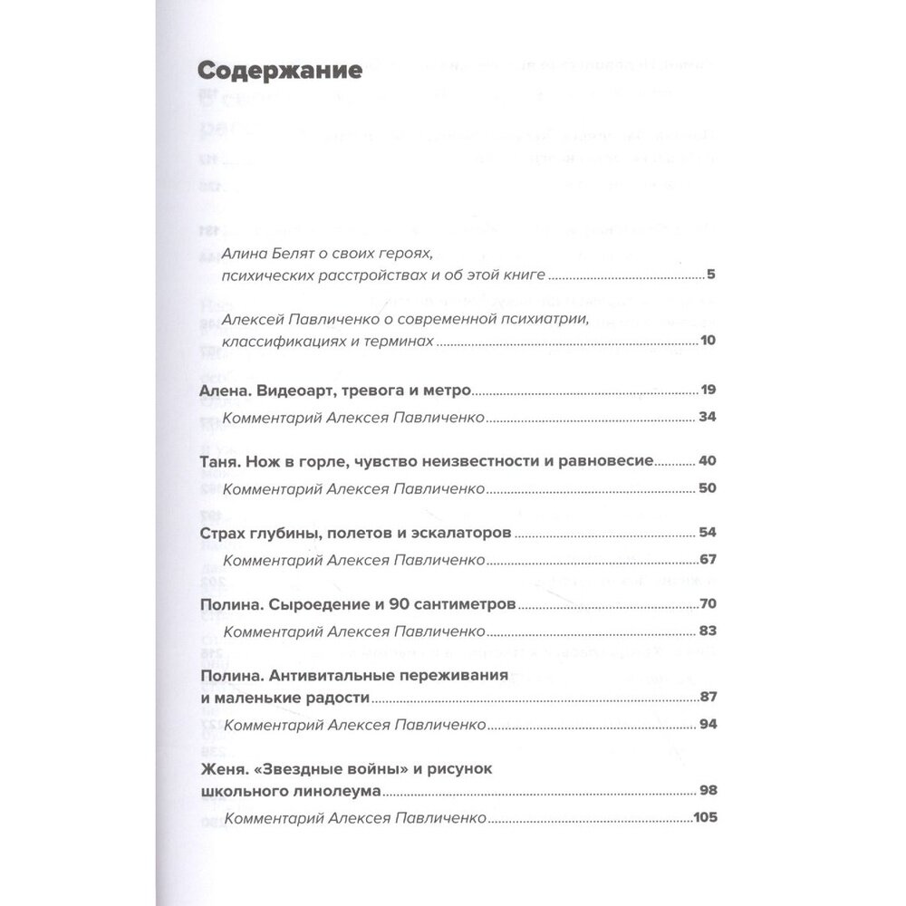 Одна из самых интересных и приятных мне книг о психиатрии. Первое, на что я обратила внимание — в книге нет фото, но есть небольшое описание внешности героя. Такое, каким героя видит автор. Сами истории честные, в них много здоровой критики к своему состоянию. Гости подкаста Алины — успешные журналисты, менеджеры проектов, научные работники. Большинство из них высокофункциональны и благодаря грамотно подобранной терапии живут обычной жизнью большую часть времени.