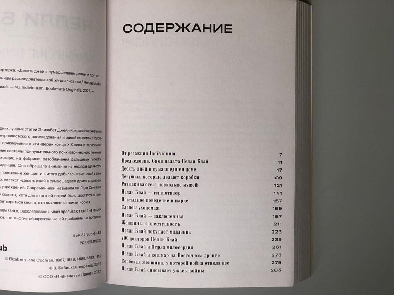 Сначала я купила эту книгу себе, потом для своей подруги. Невероятная история, кажется, что все, что в книге описано, может происходить только в кино. Столько интересных тем первой удалось поднять журналистике. Даже завидно, что в наше время сделать что-то подобное сложно. Самые сильные впечатления вызывает репортаж из псих больницы.