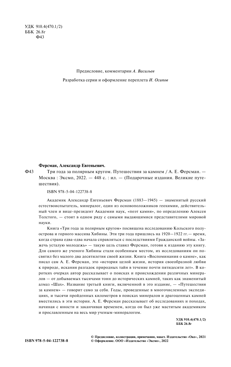 Три года за полярным кругом. Путешествия за камнем (Ферсман Александр Евгеньевич); ООО "Издательство "Эксмо", 2021