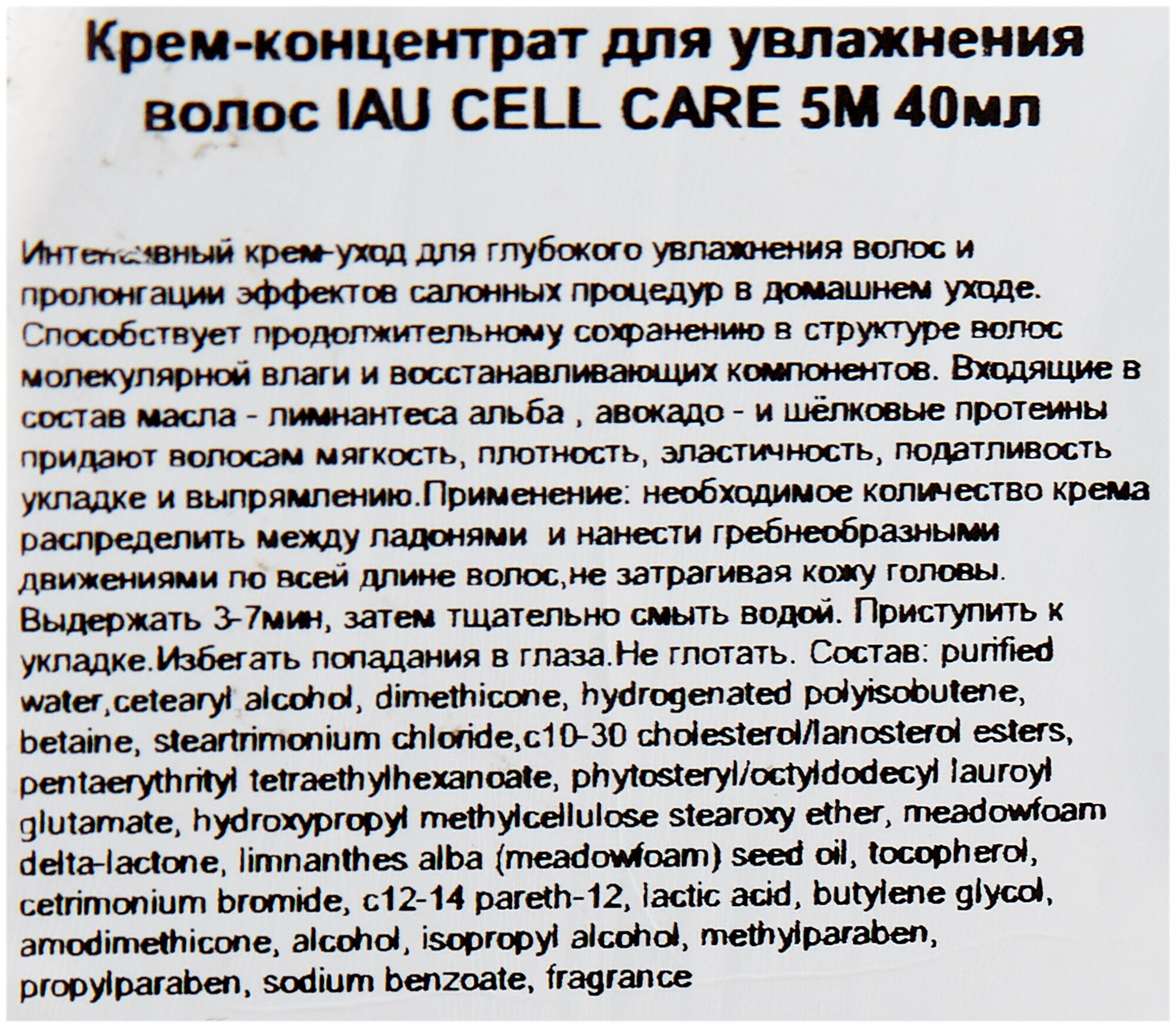 Крем-концентрат для увлажнения волос IAU CELL CARE 5М Lebel/Лебел 40мл Такара Бельмонт Корпорейшн (1638600)