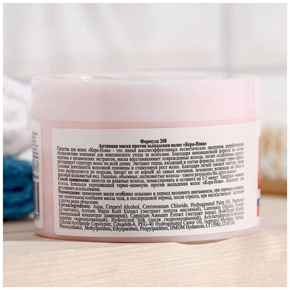 Средства для волос «Кера-Нова» - это линия высокоэффективных косметических продуктов, разработанных специалистами компании для комплексного ухода за волосами. Благодаря инновационной формуле на основе кератина и органических экстрактов, маска восстанавливает поврежденные волосы, питает ослабленные корни и реставрирует структуру волос по всей длине.