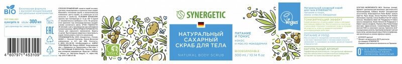 Скраб для тела Synergetic Питание и тонус 300мл 4607971453109