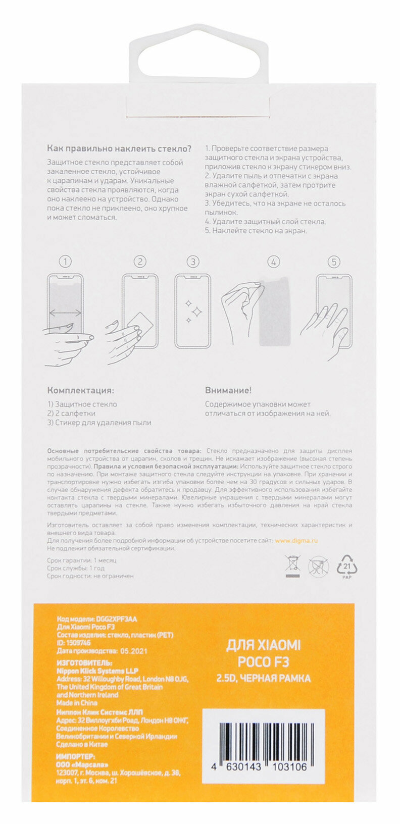 Модель: для Xiaomi Poco F3 2.5D (DGG2XPF3AA)