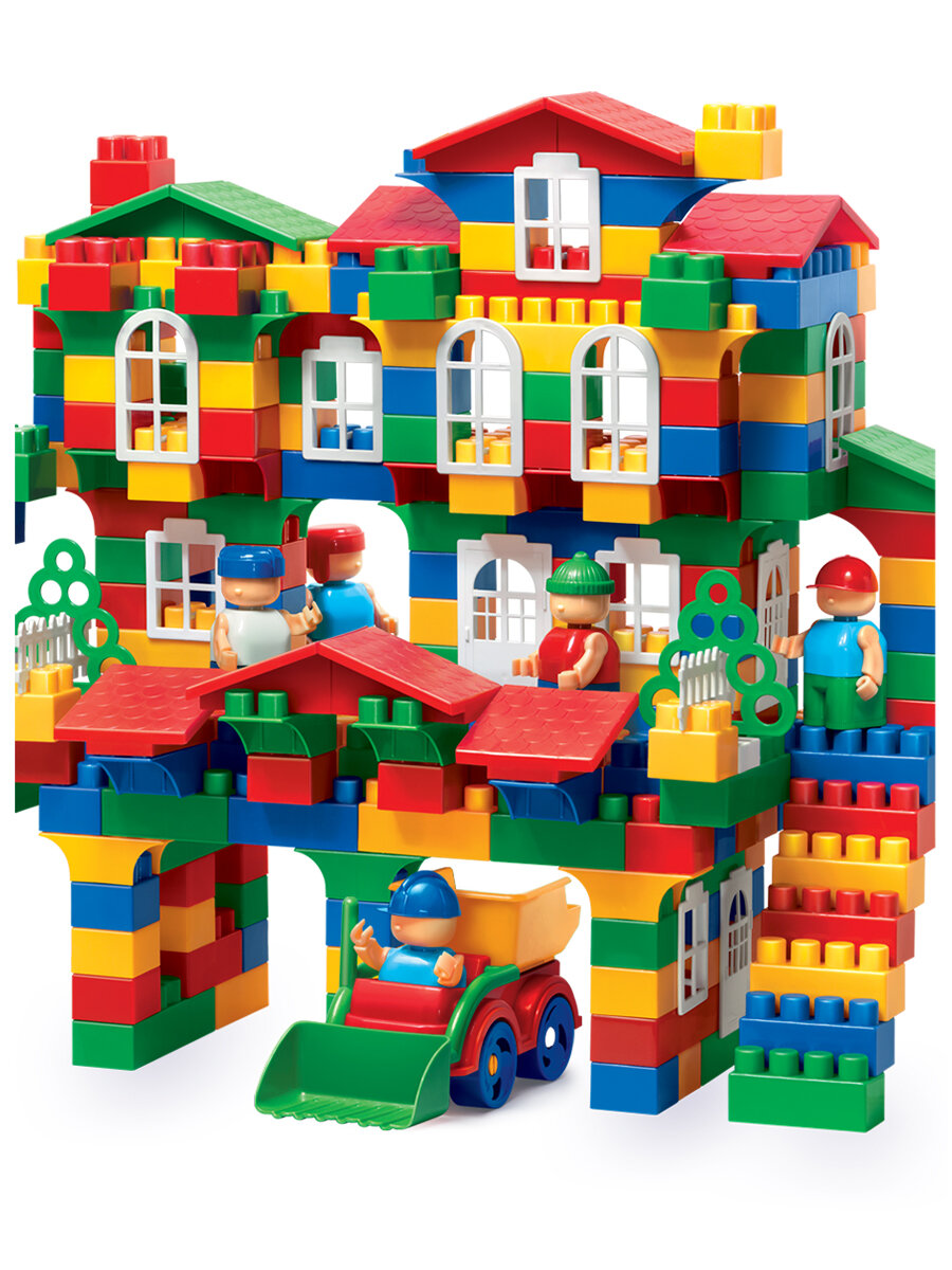 Самый большой набор блочного конструктора Bauer Супер-мешок. В наборе все для строительства города: кубики разных размеров, 5 платформ для автомобилей, окна, двери, переходы. С этим набором ребенок может построить целую серию различных зданий. Игра развивает мелкую моторику, пространственное воображение, надолго занимает Вашего ребенка. Детали конструктора изготовлены из безопасного пластика с применением пищевых красителей.