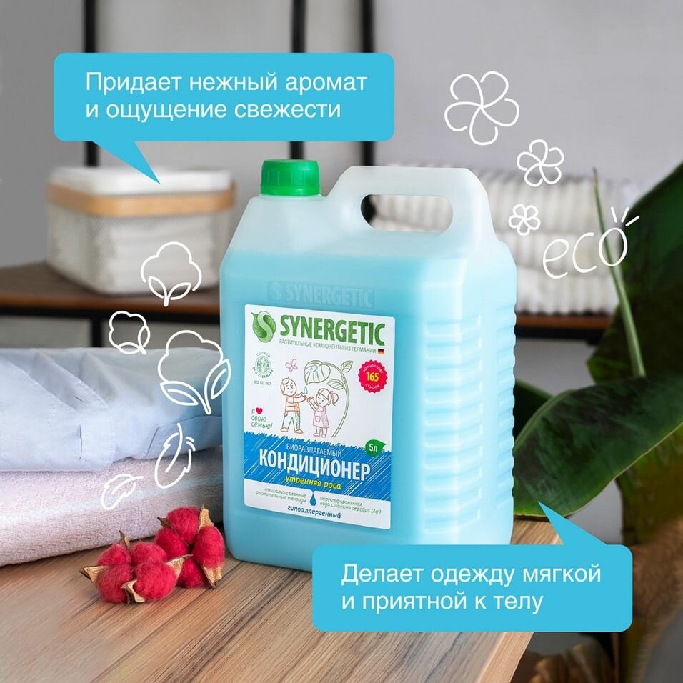 Кондиционер для белья SYNERGETIC Кондиционер для белья Утренняя роса 5 л