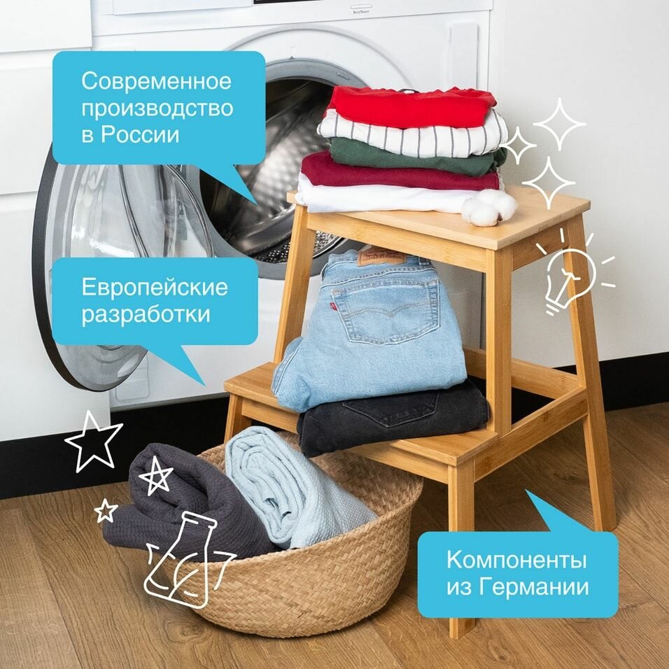С экологичным ополаскивателем одежда станет не только мягкой и приятной к телу, но и приобретет невесомый аромат чистоты и легкой свежести.