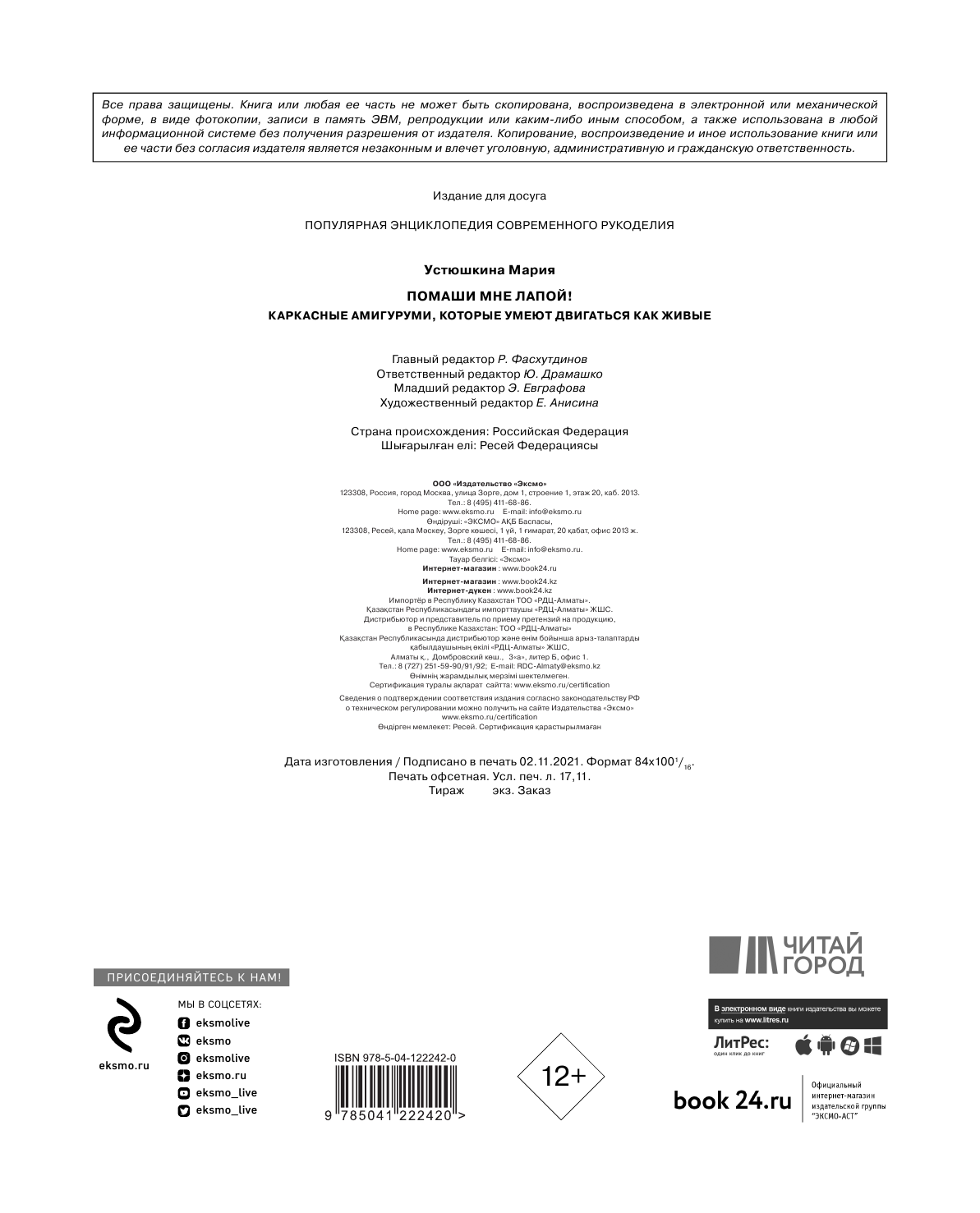 Сервис сравнения цен СкидкаГИД предлагает сравнить цены на товар «Книга: Помаши мне лапой! Каркасные амигуруми которые умеют двигаться как живые (Устюшкина Мария); ООО "Издательство "Эксмо", 2022»