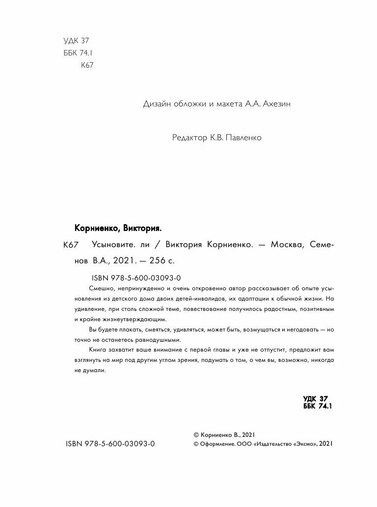 Книга: Усыновите. ли (Корниенко Виктория Александровна); ООО "Издательство "Эксмо", 2021
