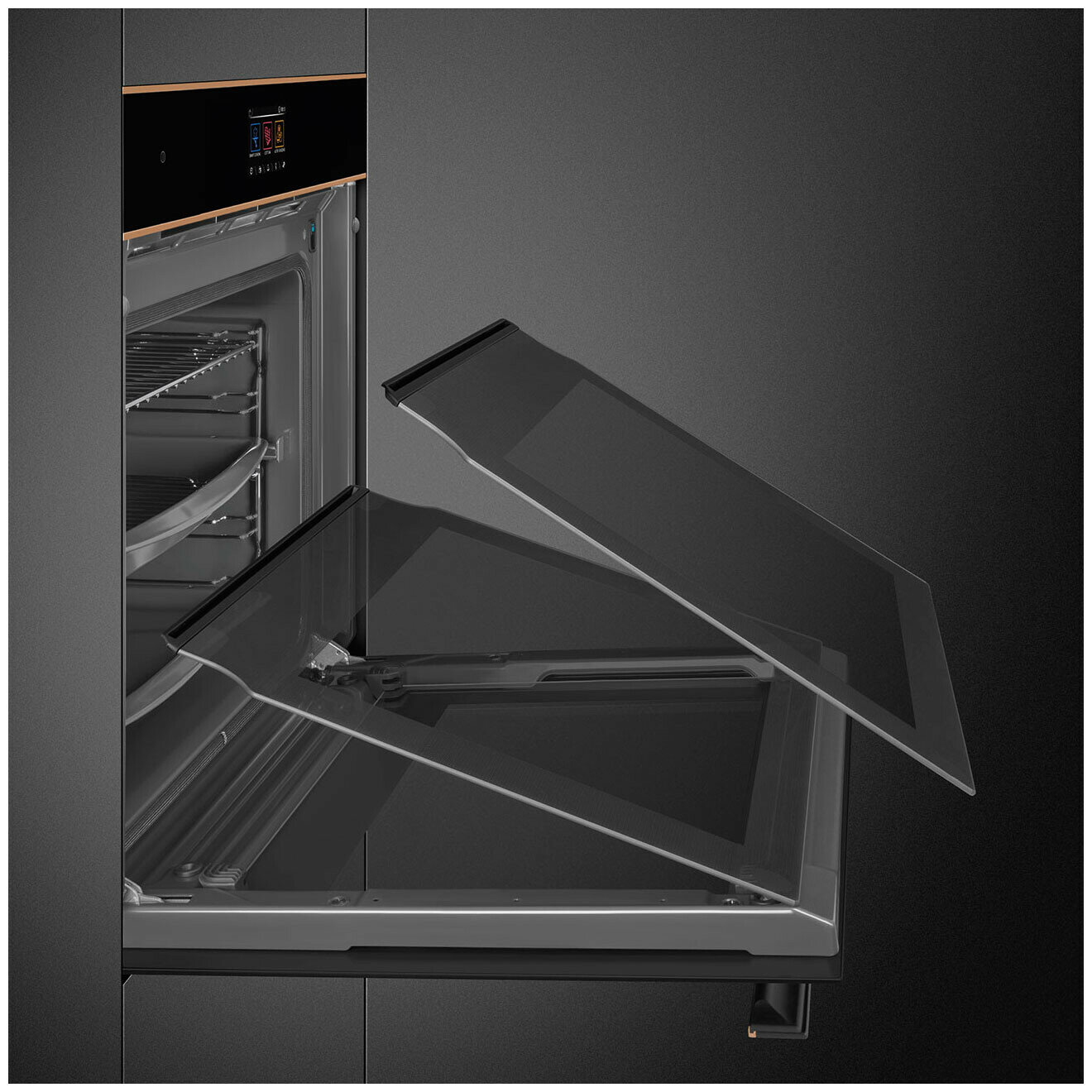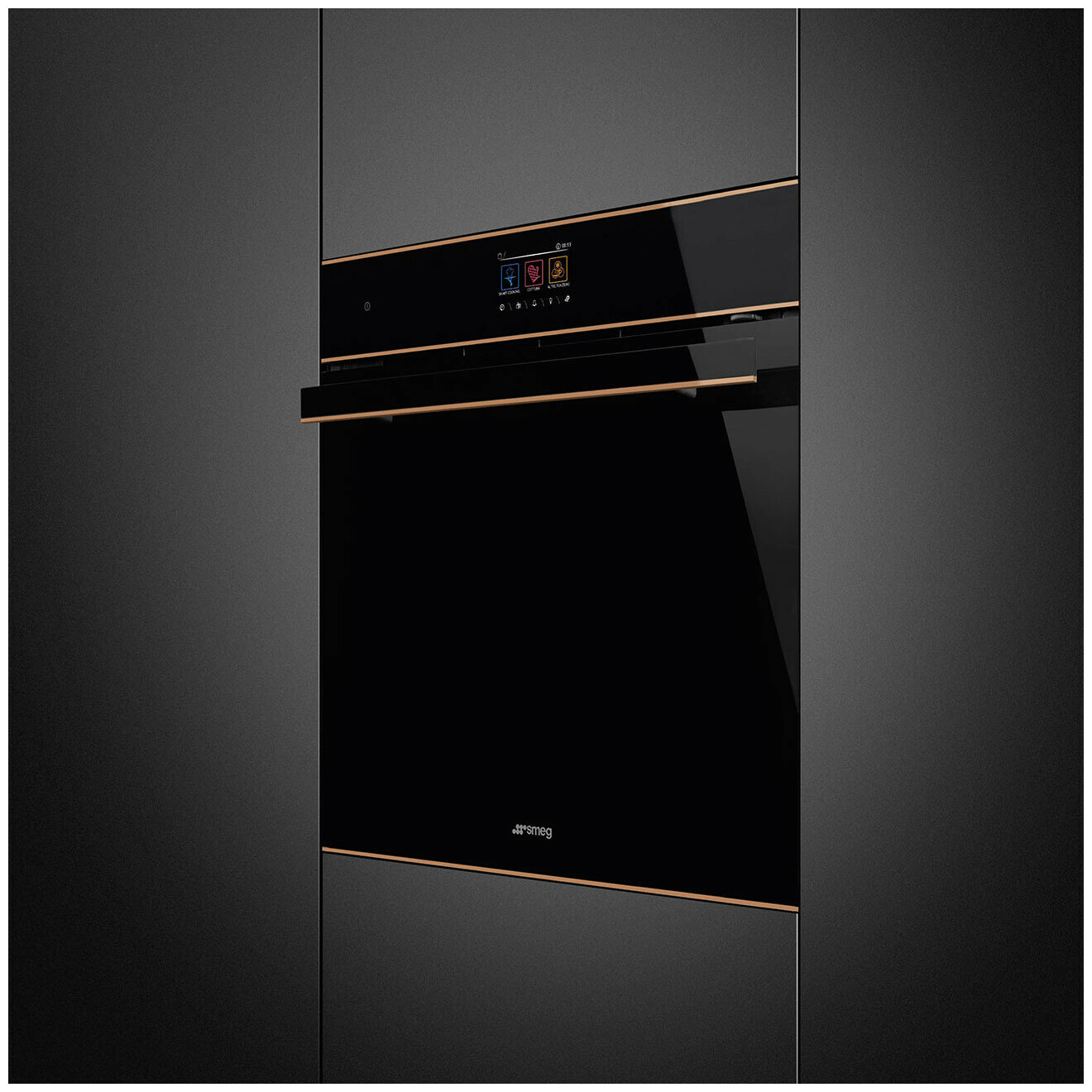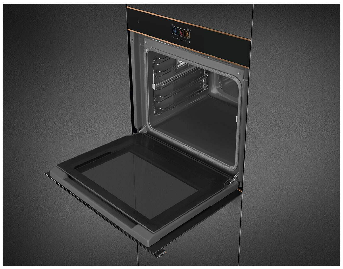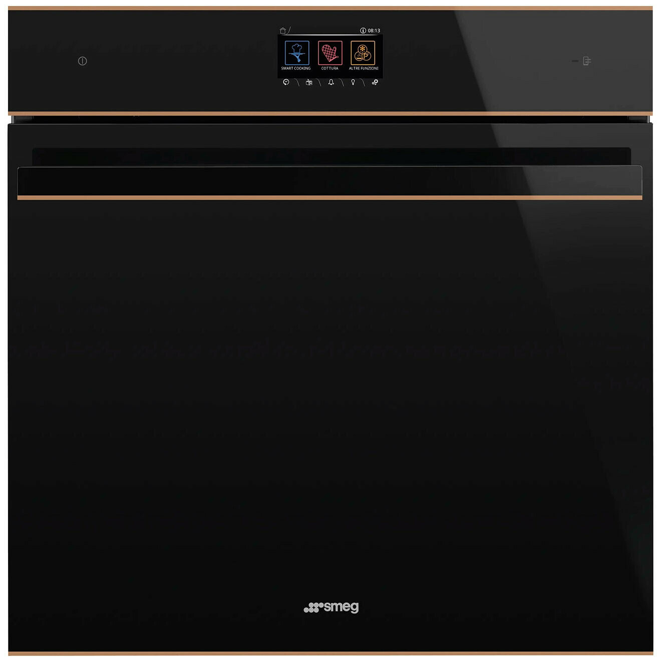 Smeg - это многофункциональный духовой шкаф объёмом 68 литров с пиролитической очисткой. Пиролитическая очистка: духовка нагревается до температуры близкой к 500 °C и превращает жир и остатки пищи в мелкий пепел, который можно легко стереть влажной тканью. При такой высокой температуре дверца автоматически блокируется в целях безопасности, в то время как температура внешней поверхности дверцы остаётся контролируемой, поэтому к ней можно безопасно прикасаться. Функция настраивается пользователем в зависимости от уровня загрязнения духовки. Приготовление с использованием датчика температуры позволяет отобразить температуру, измеренную датчиком, и установить целевую температуру, которой должно достичь блюдо. Когда центр блюда достигнет желаемой температуры, приготовление прекращается. Модель оснащена устройством для блокировки управления, чтобы не было возможности случайно изменить программу или цикл приготовления, включить или выключить прибор. Эмаль Ever Clean наносится электростатически, чтобы предотвратить образование трещин или сколов с течением времени. Эмаль устойчива к бытовым кислотам и способствует более тщательной очистке стенок духовки благодаря небольшой пористости. Эмаль Ever Clean создаёт безупречный вид как внутри духовки, так и на противнях, что делает поверхности духовки невероятно привлекательными и сохраняет их в течение долгого времени, так как снижает адгезию жира во время приготовления