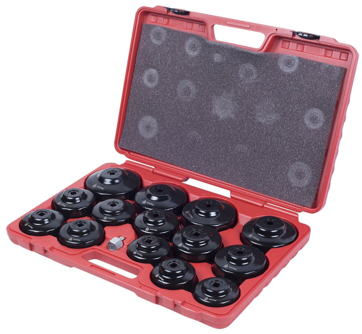 Набор съёмников масляных фильтров мастак 103-40015C активно применяется как в крупных, так и в небольших сервисных центрах, специализирующихся на ремонте и обслуживании автомобилей. С помощью изделий, входящих в комплект, процесс замены требуемых элементов становится не только быстрее, но и удобнее. Квадраты присоединения 3/8" и 1/2".Чашки изготовлены из листовой стали толщиной около 1 мм методом штампа. Посадочный вырублен в шайбе толщиной 3 мм и приварен к основанию чашки.