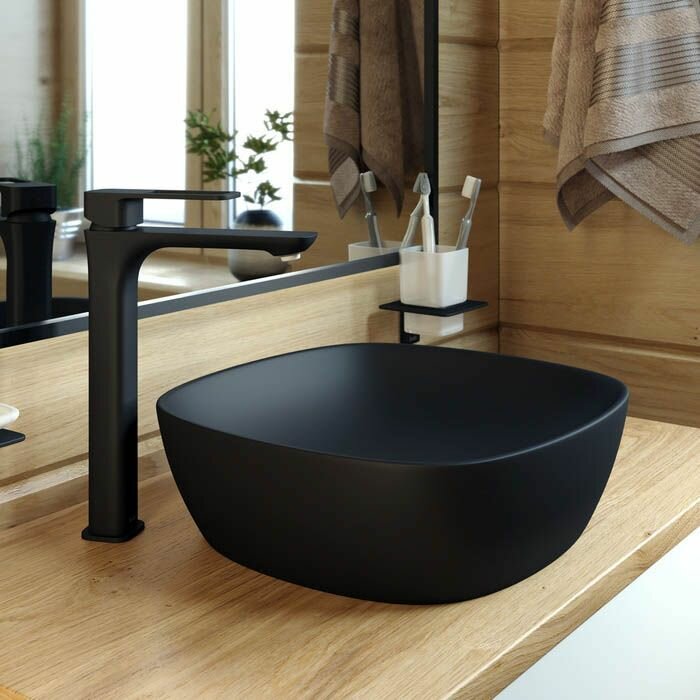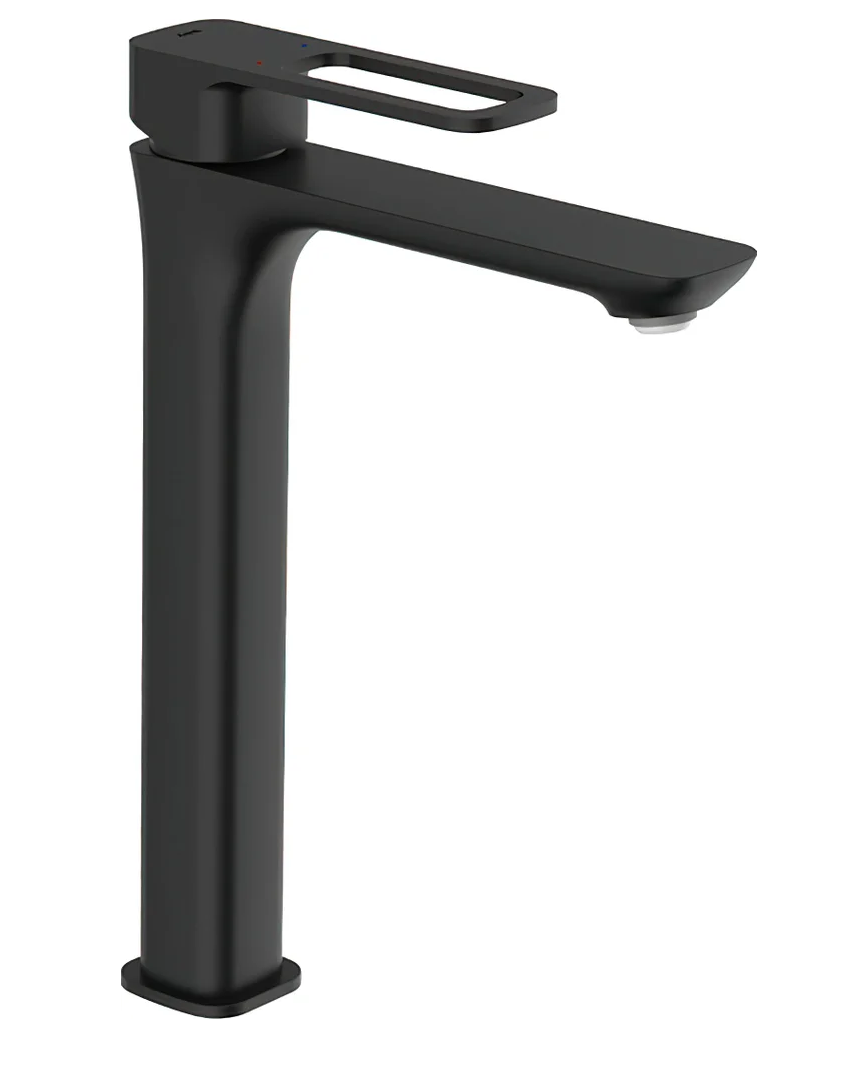 Высокий смеситель для настольного умывальника Slide в трендовом черном цвете отлично дополнит настольный умывальник-чашу. Отверстие-петля на ручке выполняет декоративную и при этом практичную роль — ее легко захватить даже намыленной рукой и отрегулировать напор или температуру.