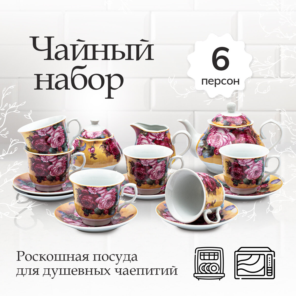 | Состав набора | блюдце - 6 шт.; заварочный чайник - 1 шт.; молочник - 1 шт.; сахарница - 1 шт.; чашка - 6 шт. |