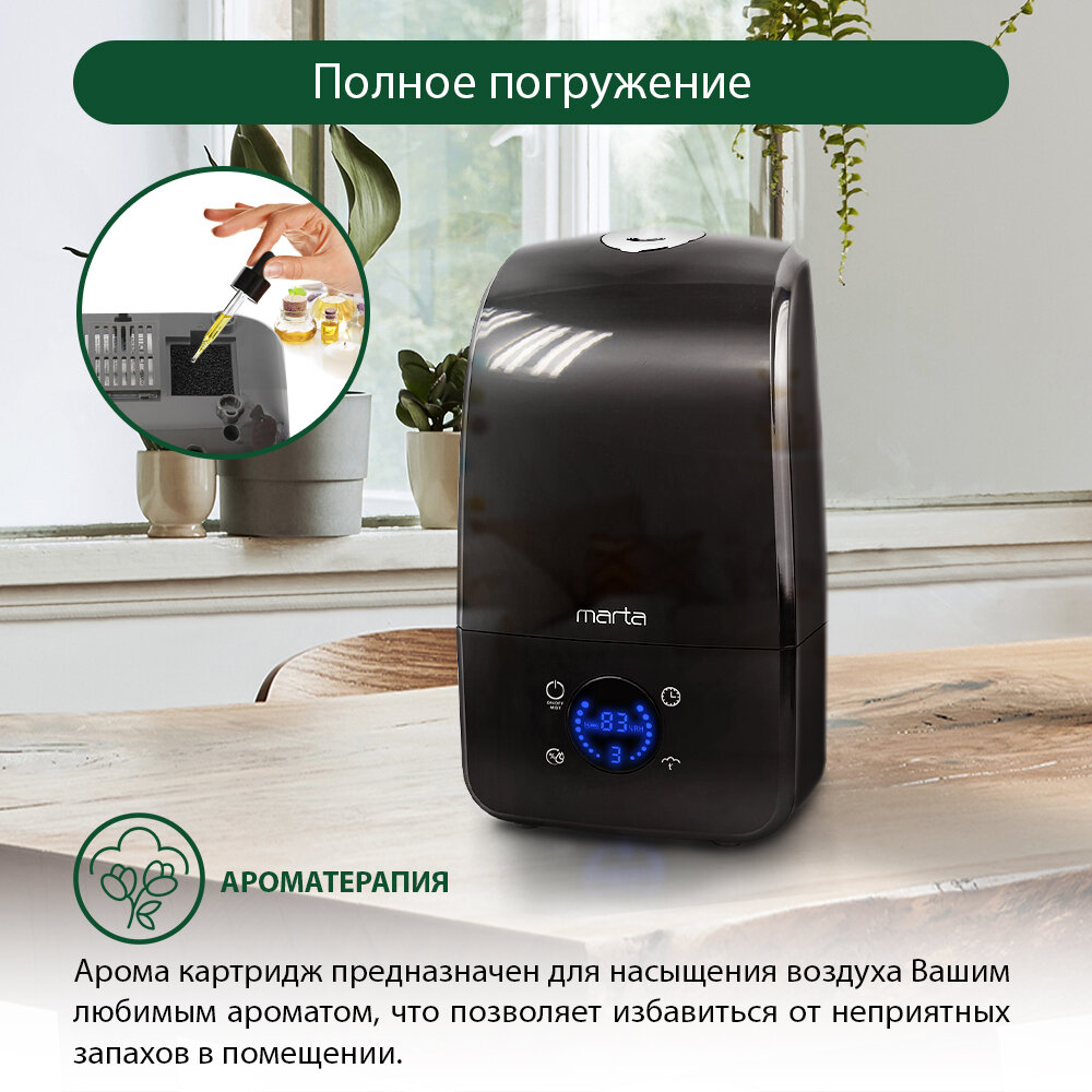 Воздухоувлажнитель Marta MT-2382 Black – это устройство, которое помогает поддерживать оптимальный уровень влажности в комнате.