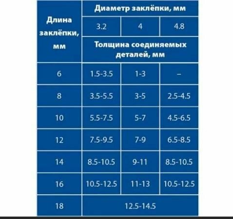 | Размер заклепок (сталь) | 2.4-4.8 |