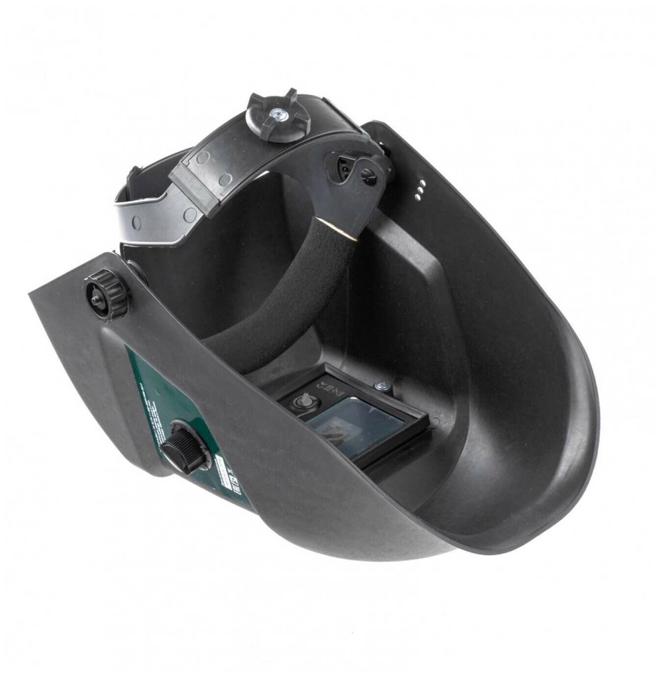 Преимущества: - С помощью внешней ручки можно менять степень затемнения 9 - 13 DIN даже во время сварки; - Предусмотрена возможность регулировки чувствительности и задержки затемнения для удобства работы; - Щиток имеет встроенный съемный аккумулятор и солнечную батарею для увеличения продолжительности работы; - Щиток выполнен из термостойкого пластика для повышенной прочности и устойчивости к высоким температурам; - Удобство работы обеспечивает регулируемое оголовье, позволяя надежно зафиксировать щиток на голове; - Чтобы ободок оголовья не натирал лоб, предусмотрены поролоновая накладка и силиконовый обтюратор; Небольшой вес щитка 460 г обеспечивает комфортную работу. Предназначена для защиты глаз от видимого, ультрафиолетового и инфракрасного излучения, а также для защиты головы и шеи от попадания искр при сварочных работах. Материал: пластик; Размеры экрана: 93 х 43 мм; Степень затемнения: 4 - 9 - 13 Din; Рабочая температура: от -5 °С до +55 °С; Тип питания: солнечная батарея, 1 x CR2032; Тип светофильтра: хамелеон; Время затемнения: 1/10000 с; Вес: 460 г.