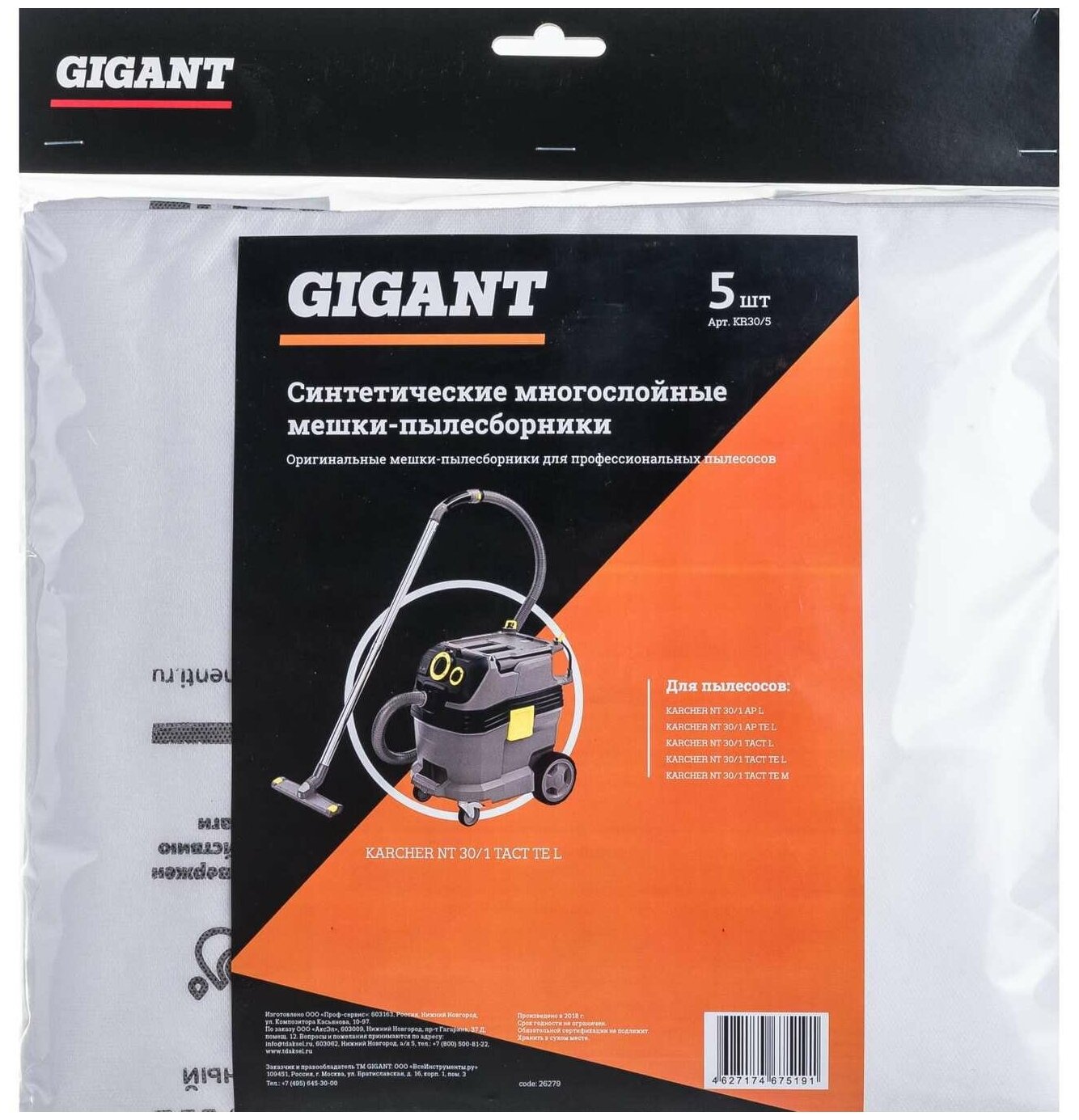 Фильтр-мешки Gigant KR30/5 изготовлены из синтетического материала высокой прочности. Трехслойный нетканый материал устойчив к повреждениям даже при попадании крупного строительного мусора. Предназначены для промышленных и строительных пылесосов: KARCHER NT 30/1 TACT TE L KARCHER NT 30/1 TACT TE M KARCHER NT 30/1 TACT L KARCHER NT 30/1 AP TE L KARCHER NT 30/1 AP L Gigant – собственная торговая марка компании ВсеИнструменты. ру, разработанная специально для требовательных мастеров. Продукция представлена профессиональными и бытовыми инструментами, имеет доступную цену и высокое качество. При изготовлении товаров Gigant используется современное оборудование и прочные материалы. Производство осуществляется на современных предприятиях России и Азии. Тестирование товаров осуществляется в два этапа, каждая партия инструментов проходит проверку на соответствие стандартам и заявленным техническим характеристикам. Это является залогом качества и надежности готового продукта. Продукция представлена широкой линейкой инструментов. У нас можно приобрести ручной инструмент, строительный, садовый, сантехнический, климатический, крепежный, автогаражный, а также станки, расходные материалы и многое другое.