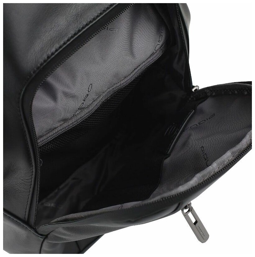 | Прочие особенности и свойства | Стильная кожаная сумка с одной лямкой из новой коллекции Piquadro Urban. Изготовлен из гладкой телячьей кожи с использованием черненой фурнитуры. Сумка имеет одно отделение с кармашками для телефона и письменных принадлежностей. На передней части расположен карман на молнии и крепление для наушников |