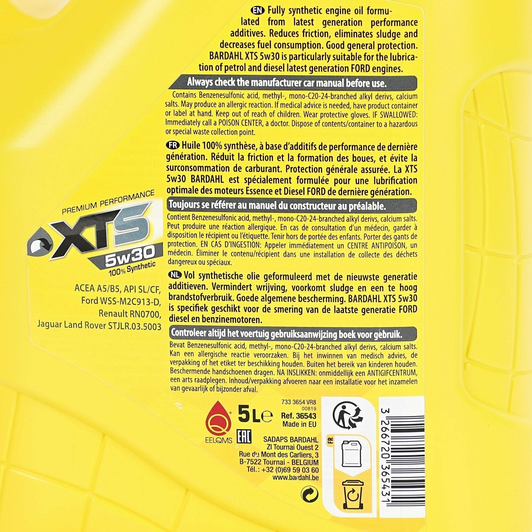 Полностью синтетическое моторное масло. Уменьшает трение, устраняет осадок и уменьшает расход топлива. Обладает хорошей общей защитой. Bardahl XTS 5W30 разработано для бензиновых и дизельных двигателей последнего поколения FORD.