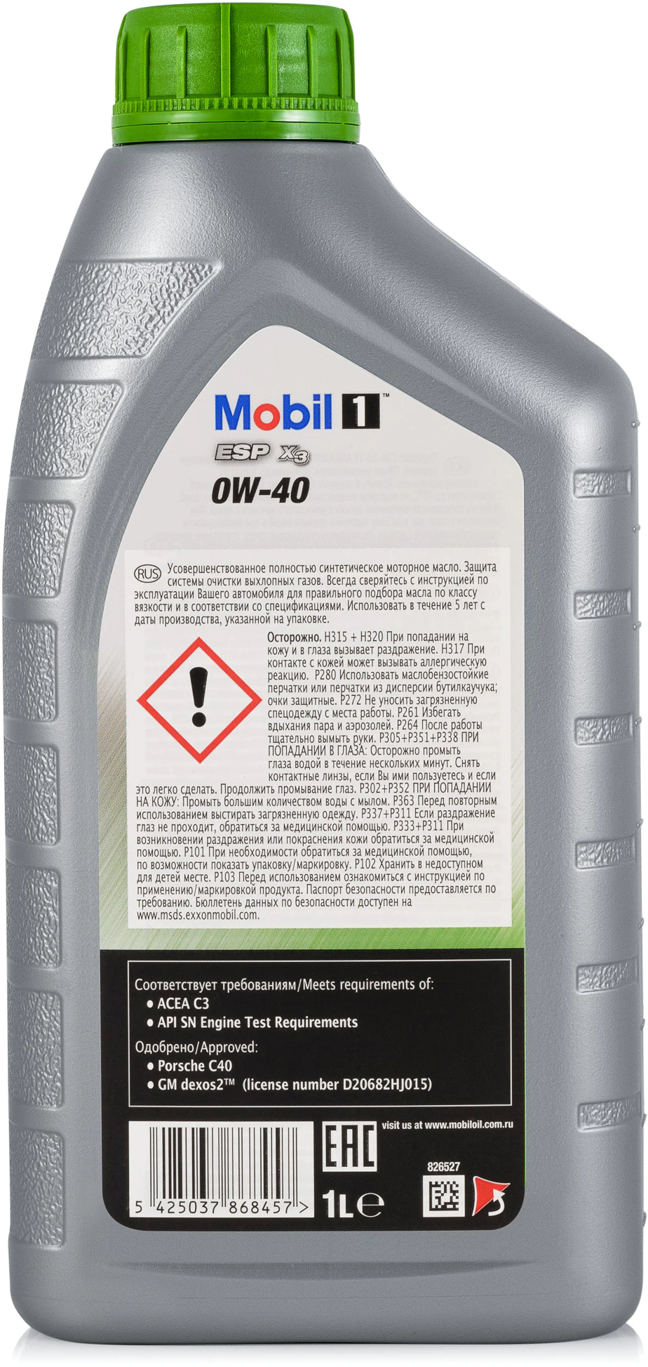 Mobil 1™ ESP X3 0W-40 - это полностью синтетическое моторное масло с улучшенными свойствами, специально разработанное для поддержания отличных рабочих характеристик мощных двигателей и обеспечения исключительной чистоты двигателя, защиты от износа, долговечности и повышенной экономии топлива.