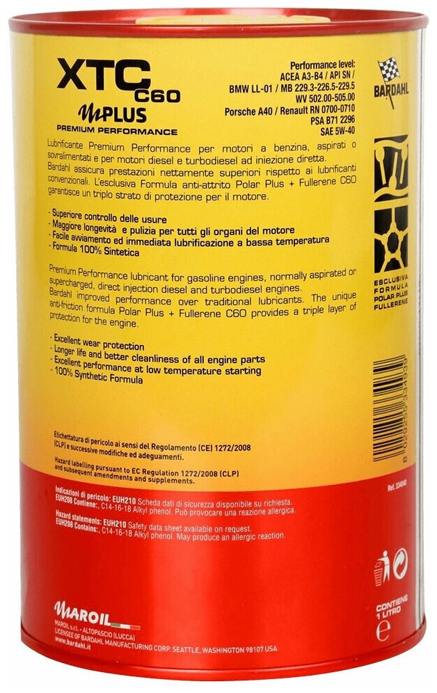 Моторное масло BARDAHL XTC C60 5W-40 1л. синтетическое [334040]