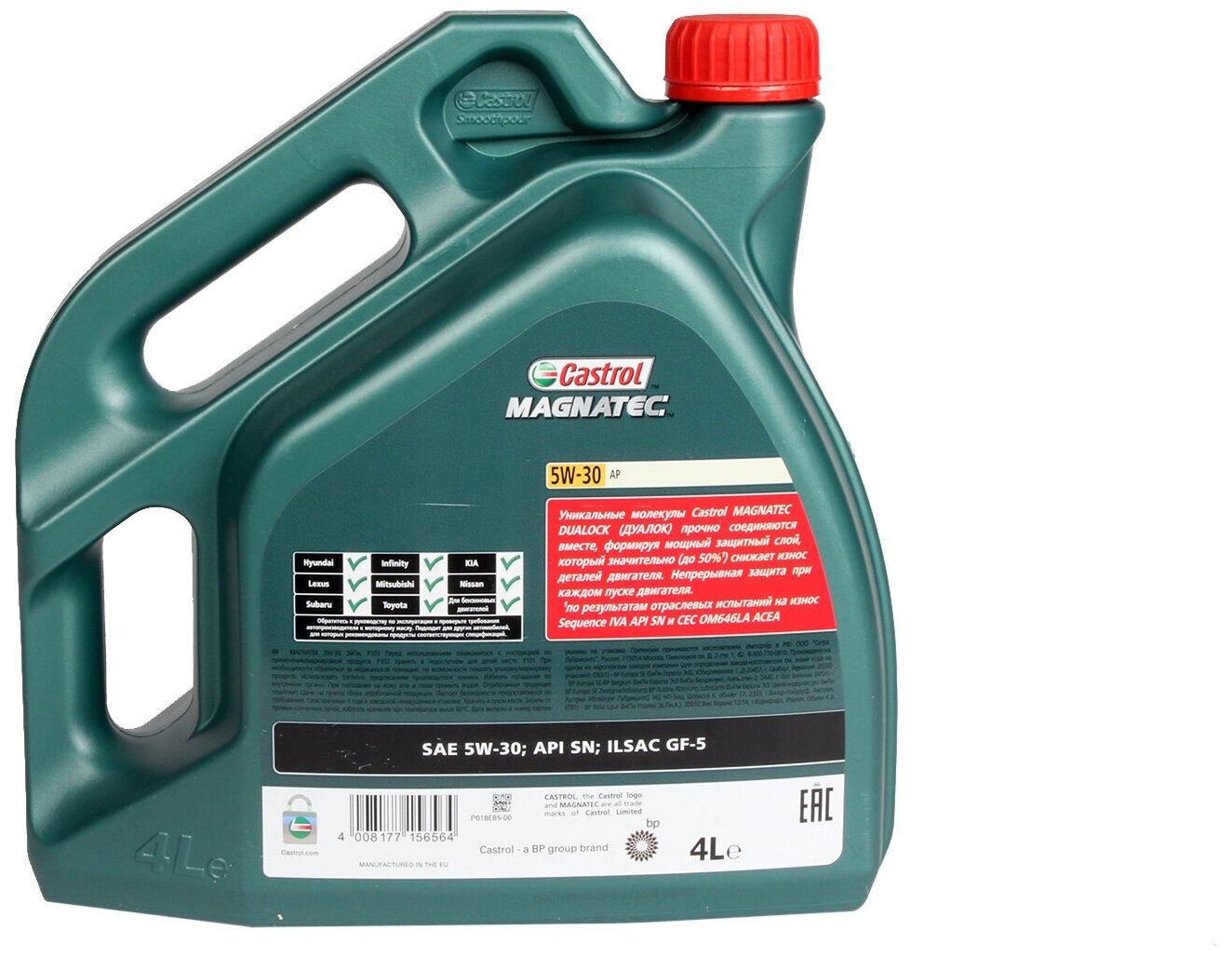 Моторное масло Castrol MAGNATEC 5W-30 AP автомобилей, в которых производитель техники рекомендует использовать смазочные материалы, SAE 5W-30 и спецификациям API SN, ILSAC GF-5 или более ранним стандартам.