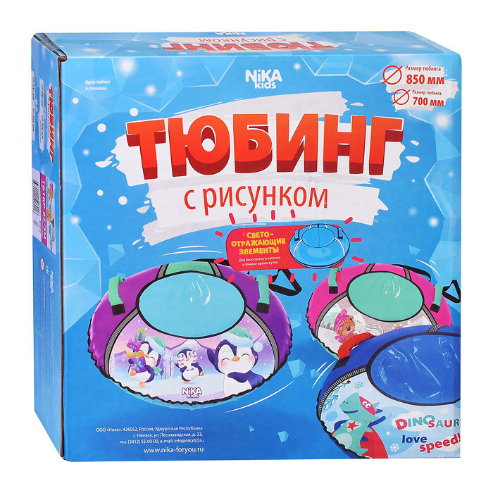 Тюбинг Ника Пришельцы ТБ1КР-85 85 см - яркий, красочный из принтованной ткани в новом крое принесет незабываемые впечатления от зимней прогулки. Водонепроницаемая ткань из которой изготовлена верхняя часть изделия, создаст дополнительное сопротивление и не позволит выскользнуть из тюбинга. Небольшой веса изделия обеспечивает удобство для самого ребенка. Спустившись с горки ему не будет тяжело поднимать свое снаряжение обратно вверх. А когда малыш устанет, и нести его сокровище придется вам, это не усложнит ваш путь. Это современная замена санок. Особенности: усиленное дно все швы усилены капроновой лентой крепкие эргономичные ручки защитный внутренний клапан с потайной молнией буксировочный ремень устойчивый к морозам материал до -28ºС камера в комплекте верх и вставки с рисунком – OXFORD 500D дно – автотент ПВХ 610. чехол – 930 мм тюбинг в накачанном виде – 85 см. Рекомендации по подбору под возраст: Тюбинги диаметром 65, 70 и 75 см - от 2-3 до 4-5 лет Тюбинги диаметром 80 и 90 см - от 2-3 до 6-8 лет Тюбинги диаметром 100, 105 и 110 см - от 6-8 лет Тюбинги диаметром 120 см - для подростков и взрослых Тюбинги диаметром 135 и 150 см - для подростков и взрослых.
