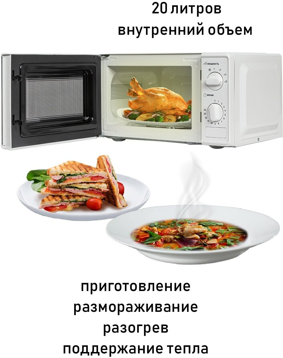 объем внутренней камеры составляет 20 л — подходит для разогрева небольших порций еды;