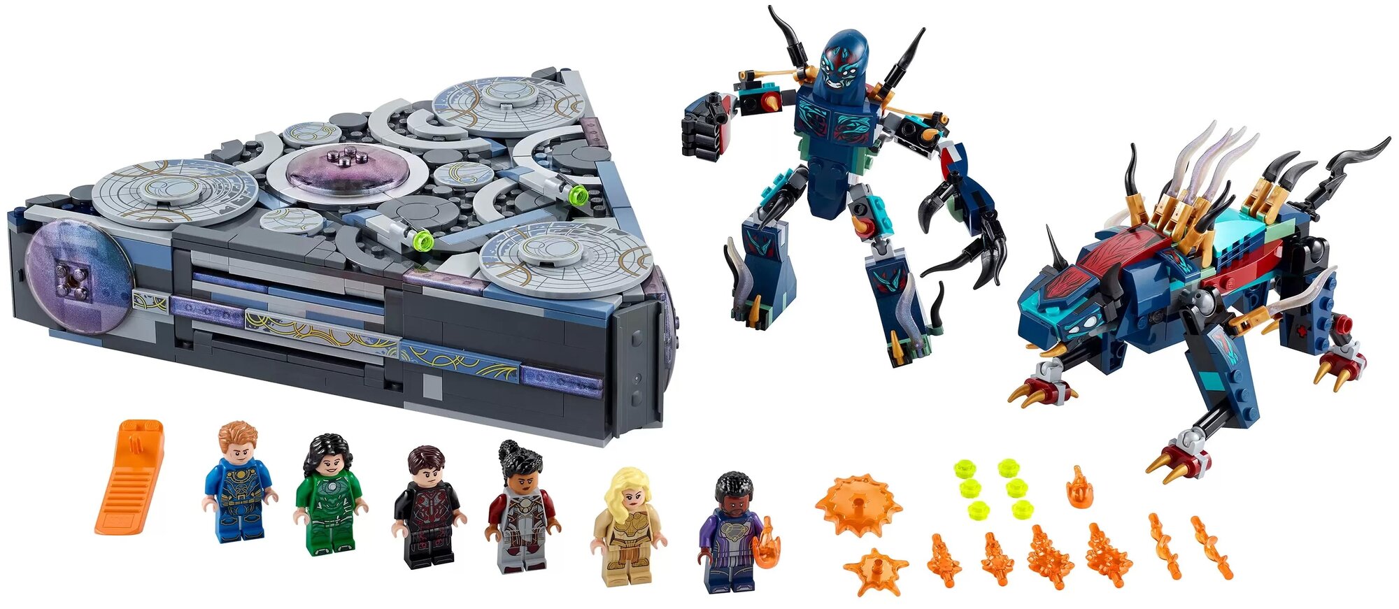 Вместе с шестерыми Вечными — Маккари, Икарисом, Теной, Серси, Друигом и Фастосом — дети будут исследовать потрясающий космический корабль. Три боковые панели открываются, предоставляя доступ к кабине, оружейной комнате, лаборатории и многому другому. А когда появится лидер Девиантов со своими спутниками, дети должны будут сразиться с ними на этом космическом корабле. Если вы хотите приобрести этот набор для коллекционера минифигурок, то не забудьте, что минифигурки Друига и Фастоса есть только в этом наборе LEGO.