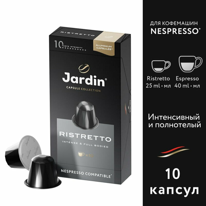 Кофе капсульный JARDIN Ristretto капсулы совместимые с кофемашинами NESPRESSO® крепость темная обжарка 50 гр 10 шт [1352-10] 10 шт./кор.