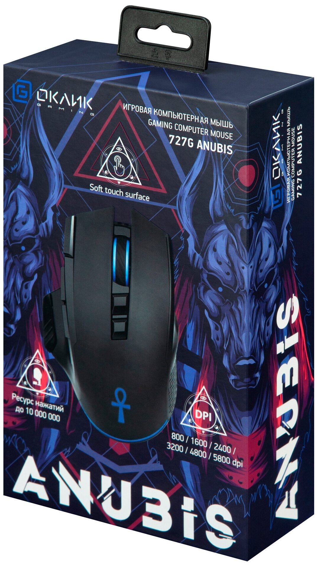 Мышь Оклик 727G ANUBIS черный, оптическая, разрешение сенсора 6400dpi, для ноутбука, проводная, длина провода 1.8м, кнопок: 9, подходит для правой руки (1465489)