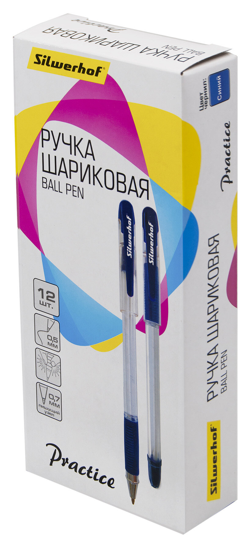 Ручка шариков. Silwerhof Practice прозрачный d=0.7мм синие сменный стержень линия 0.5мм резин. манже 12 шт./кор.