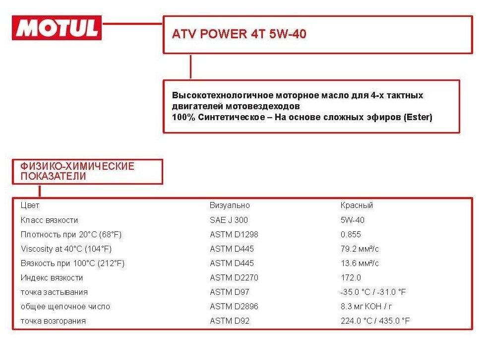 100% синтетическое моторное масло предназначено для городских и спортивных мотовездеходов и квадроциклов, оснащенных четырехтактным двигателем, который может быть совмещен с коробкой передач. Используется в технике для отдыха и развлечений.