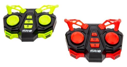 в комплекте две машинки, оснащенные всенаправленными колёсами, которые позволяют моделям вращаться на 360°, ездить боком или по диагонали. А благодаря яркой подсветке можно устраивать впечатляющие ночные заезды.