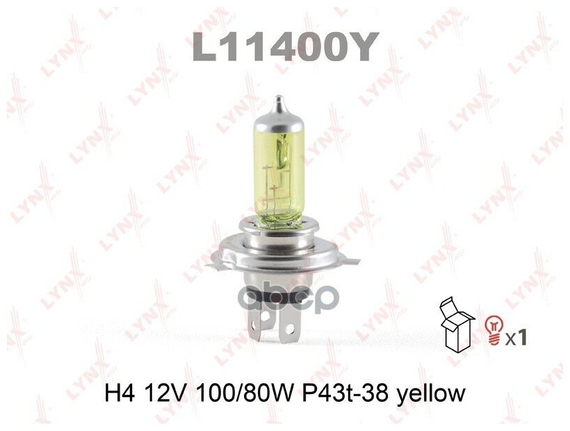 Лампа автомобильная галогенная LYNXAUTO H4 12В 1шт L11400Y