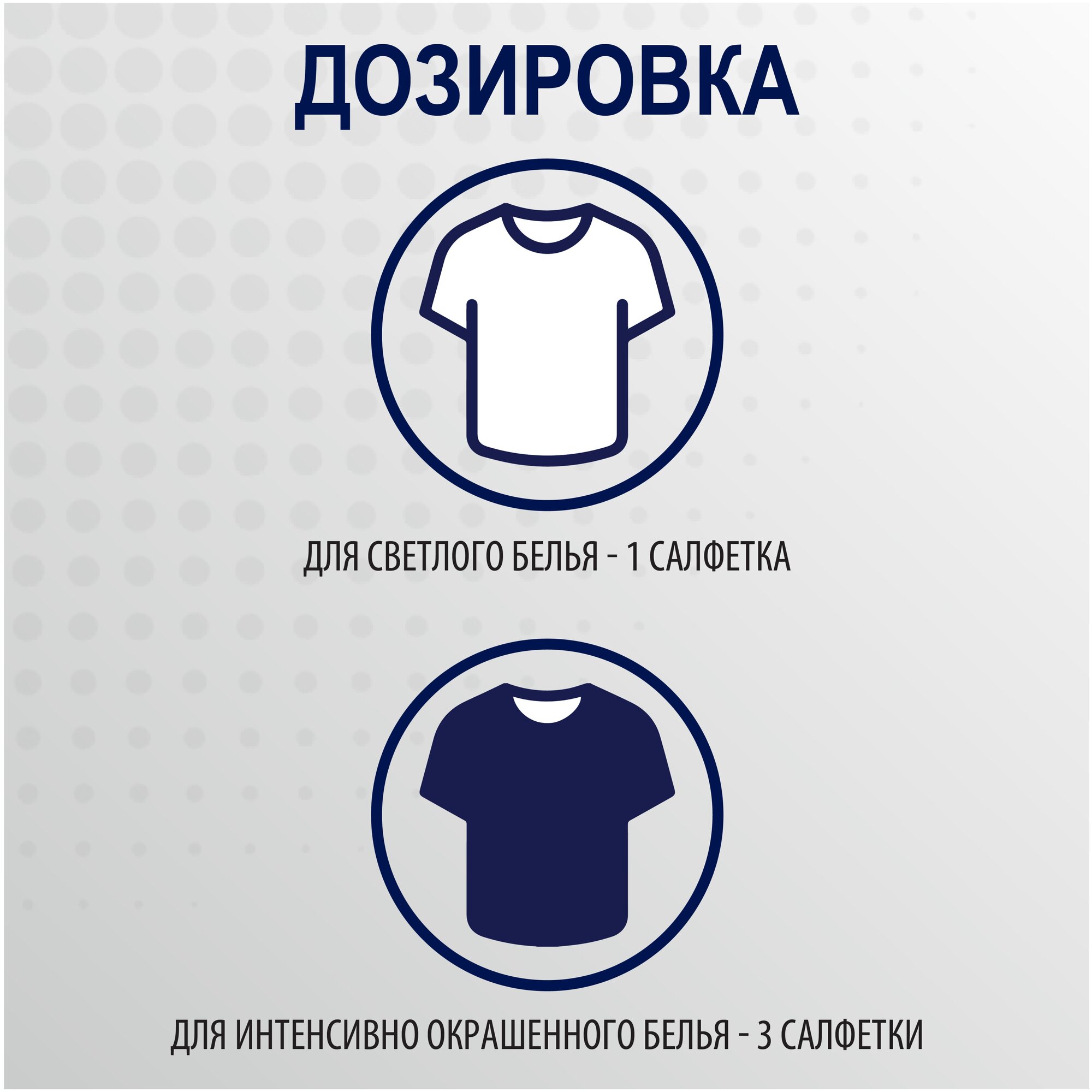 | Описание | Благодаря своей уникальной сотовой структуре салфетка поглощает выделяемый в воду красящий компонент и прочно удерживает его внутри себя, препятствует перемещению ненужных цветов и оттенков во время стирки, не допускает попадания на другие вещи. |
