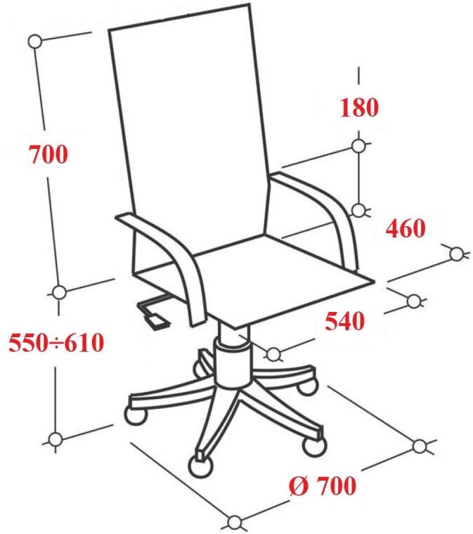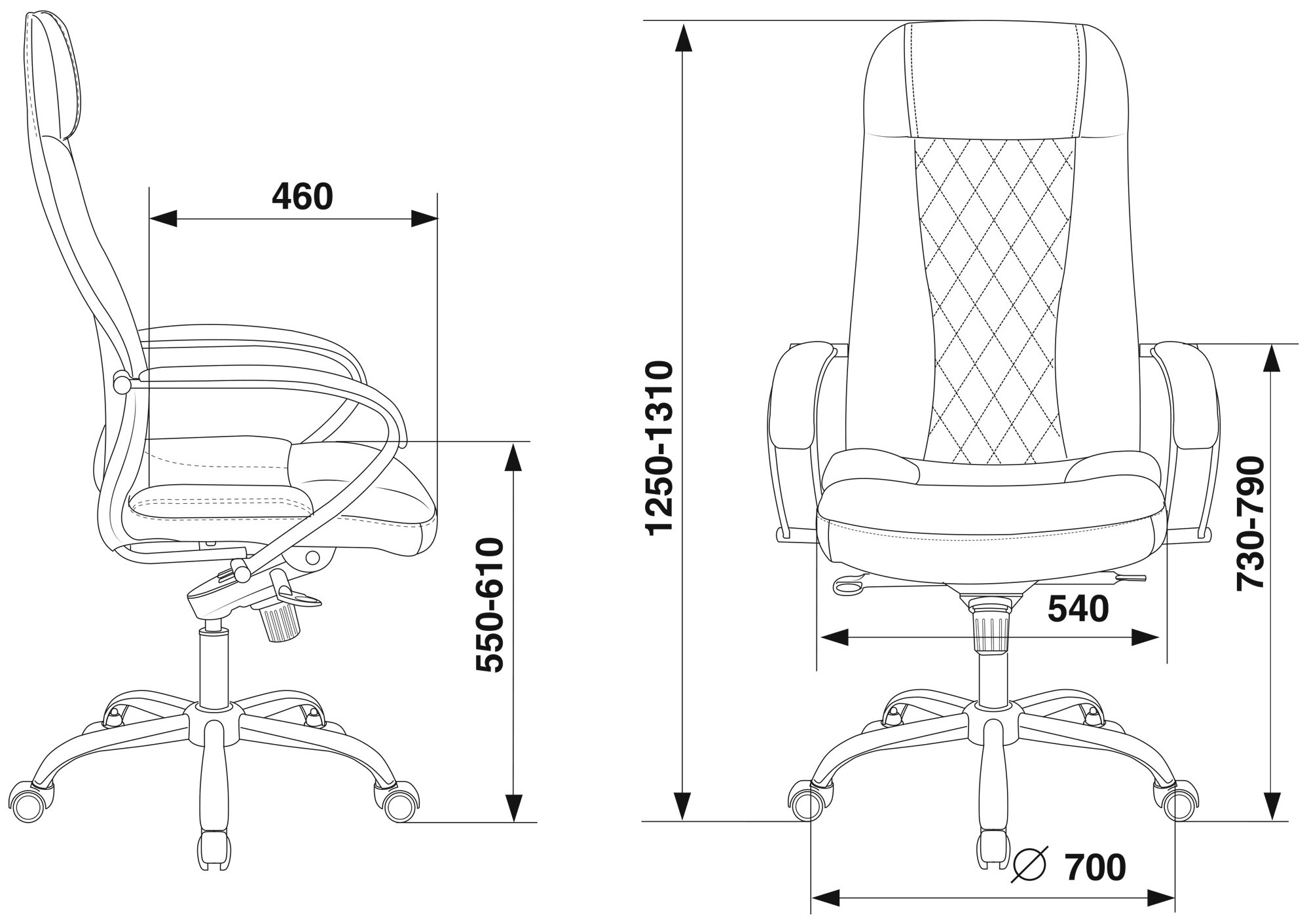 | Дополнительно | Синхромеханизм со смещенной осью качания и возможностью фиксации в нескольких положениях, Подлокотники металлические с накладками из искусственной кожи, Регулировка высоты (газлифт), Крестовина хром, Колеса для паркета / ламината, Ограничение по весу: 120 кг, Соответствует стандарту BIFMA |