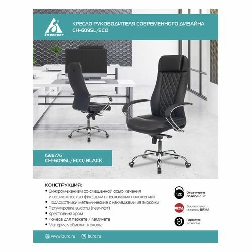 Кресло руководителя Бюрократ CH-609SL/ECO на колесиках искусственная кожа черный [ch-609sl/eco/black]
