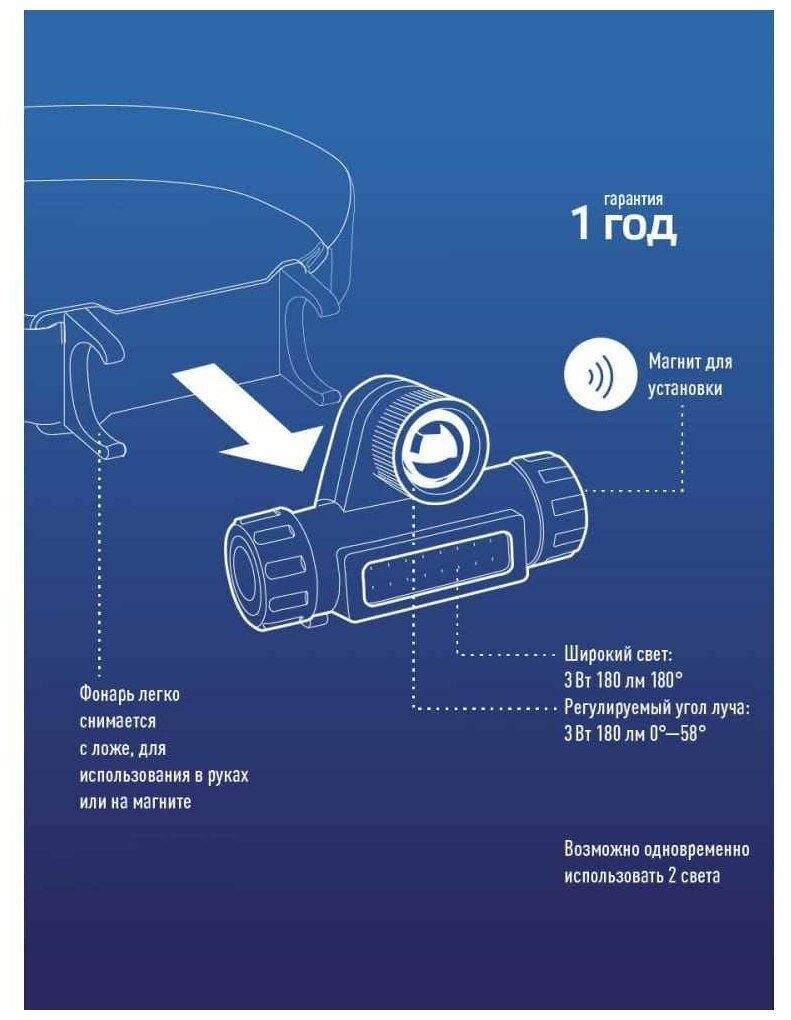 | Функции и возможности | налобный |