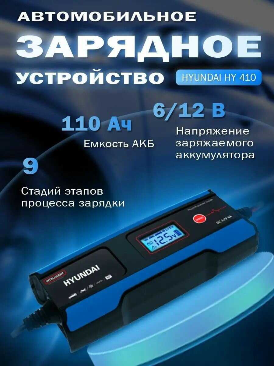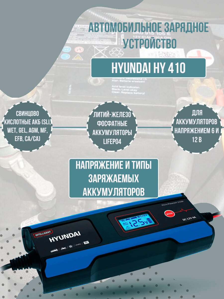 - Зарядное для всех типов аккумов. Компактное зарядное устройство для аккумулятора Hyundai HY 410.
