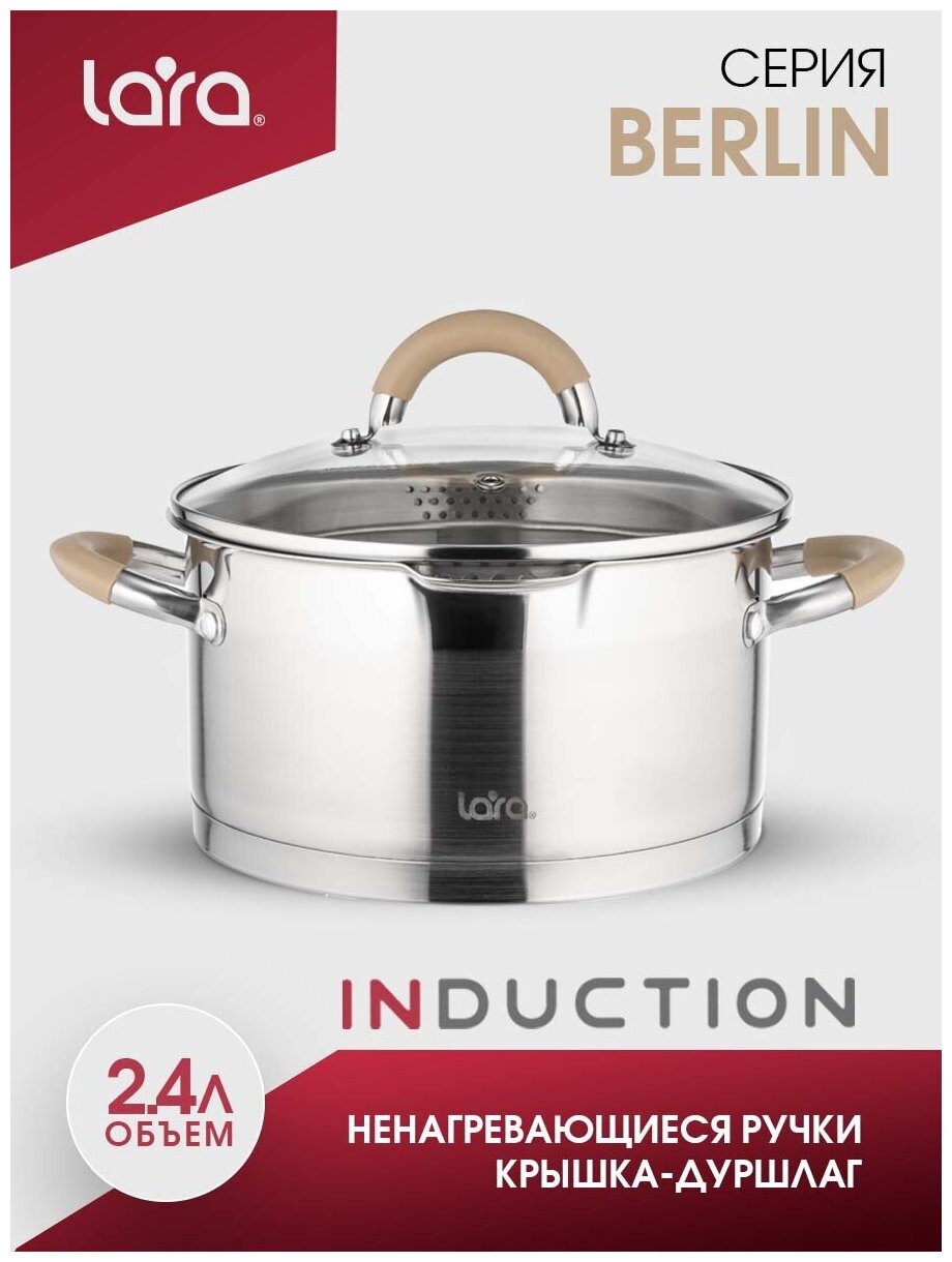Кастрюля LARA 2.4л с крышкой серебристый LR02-341