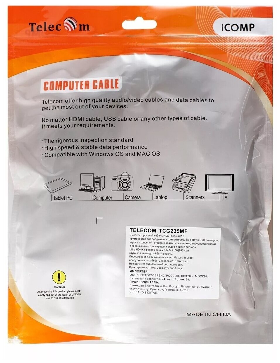 Сервис сравнения цен СкидкаГИД предлагает сравнить цены на товар «Кабель-удлинитель аудио-видео Telecom HDMI (m) - HDMI (f) ver 2.0 5м GOLD черный [tcg235mf-5m] Noname»