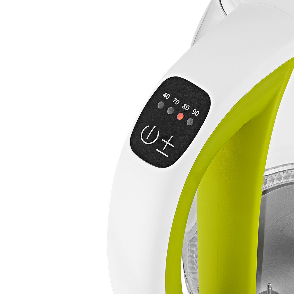 Стильный чайник Kitfort КТ-6140 выполнен из сочетания стекла, пластика и нержавеющей стали. За счёт оригинального дизайна он идеально впишется в любой интерьер. Ёмкость чайника составляет 1,7 л. Такого объёма хватит, чтобы угостить вкусным чаем всю семью! С нашей техникой очень легко подружиться, потому что она не только лёгкая и функциональная, но и будто живая с весёлыми глазами. Никого не оставит равнодушным! В любой момент вы можете отклеить этот стикер без вреда для поверхности. Чайник оснащён электронным терморегулятором и может нагреть воду от 40 до 100 °С, что очень удобно при заваривании различных сортов чая, приготовлении кофе и подогрева детского питания. Температура контролируется встроенным в дно чайника термодатчиком. Корпус чайника выполнен из экологически чистого термостойкого стекла. Он имеет большое горлышко, что облегчает доступ внутрь при мытье, а также съёмный фильтр-сетку для защиты от накипи. При включении чайника по периметру дна загорается подсветка, которая является индикатором работы и одновременно художественно подсвечивает воду разными цветами в зависимости от температурного режима.