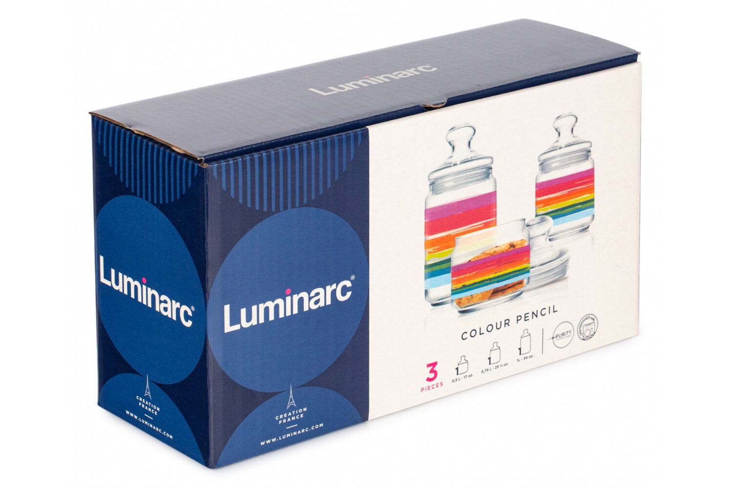 | Комплектация | Набор банок для сыпучих Luminarc 3шт (0.5л, 0.75л, 1л) |