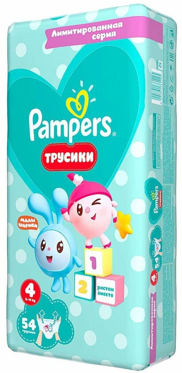 Pampers трусики Малышарики Вокруг Света Jumbo 9-14 кг 4 размер 54 шт. 81767609