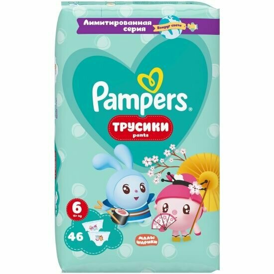 Hola muchachos! Встречайте новую лимитированную коллекцию трусиков Pampers х Малышарики «Вокруг Света»! Трусики обеспечат комфорт мирового класса и проверенную сухость Pampers до 12 часов, а любимые герои Малышарики расскажут о многообразии мира и разных культур – ведь они отправились в настоящее кругосветное путешествие! Oh la la! Франция и Италия, Мексика и Греция, Австралия и Япония – в каждой упаковке вас ждут 2 эксклюзивных дизайна трусиков с Малышариками в разных странах! Просто bellissimo! Превратите смену трусиков в весёлую и познавательную игру, пока малыш изучает мир вокруг с Pampers и Малышариками. Спешите попробовать – количество ограничено! •Комфорт мирового класса с лимитированной коллекцией трусиков Pampers x Малышарики «Вокруг света». Любимые герои-Малышарики на пачке и на самих трусиках! •2 эксклюзивных дизайна трусиков с Малышариками в разных странах в каждой упаковке •Ультрамягкий поясок и двойные мягкие бортики вокруг ножек защищают нежную кожу малыша от протеканий и натираний •Технология мгновенного впитывания надёжно защищает кожу малыша от контакта с влагой, обеспечивая сухость до 12 часов •Индикатор влаги подскажет, когда трусики пора менять •Легко снимать и легко надевать: просто разорвите трусики по боковому шву! •Одобрено независимой международной ассоциацией дерматологов •Подходят для малышей от 6 кг
