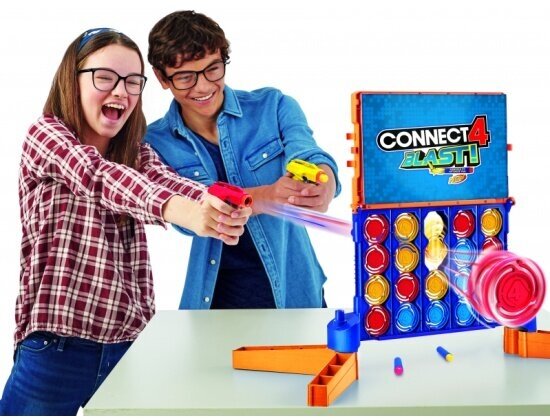 Эта захватывающая и активная игра предназначена для двух участников, в которой каждый игрок стратегически стреляет по разноцветным дискам с помощью входящих в комплект бластеров и стрел Нерф. Чтобы выиграть, игроки стремятся обойти друг друга как можно быстрее. Для этого необходимо сделать ряд из четырех дисков выбранного цвета. Продемонстрируйте свои навыки меткости и скорости реакции, стреляя бластерами Нерф по дискам. Поместите выбитые диски в загрузочный лоток в верхней части сетки и продолжайте игру.