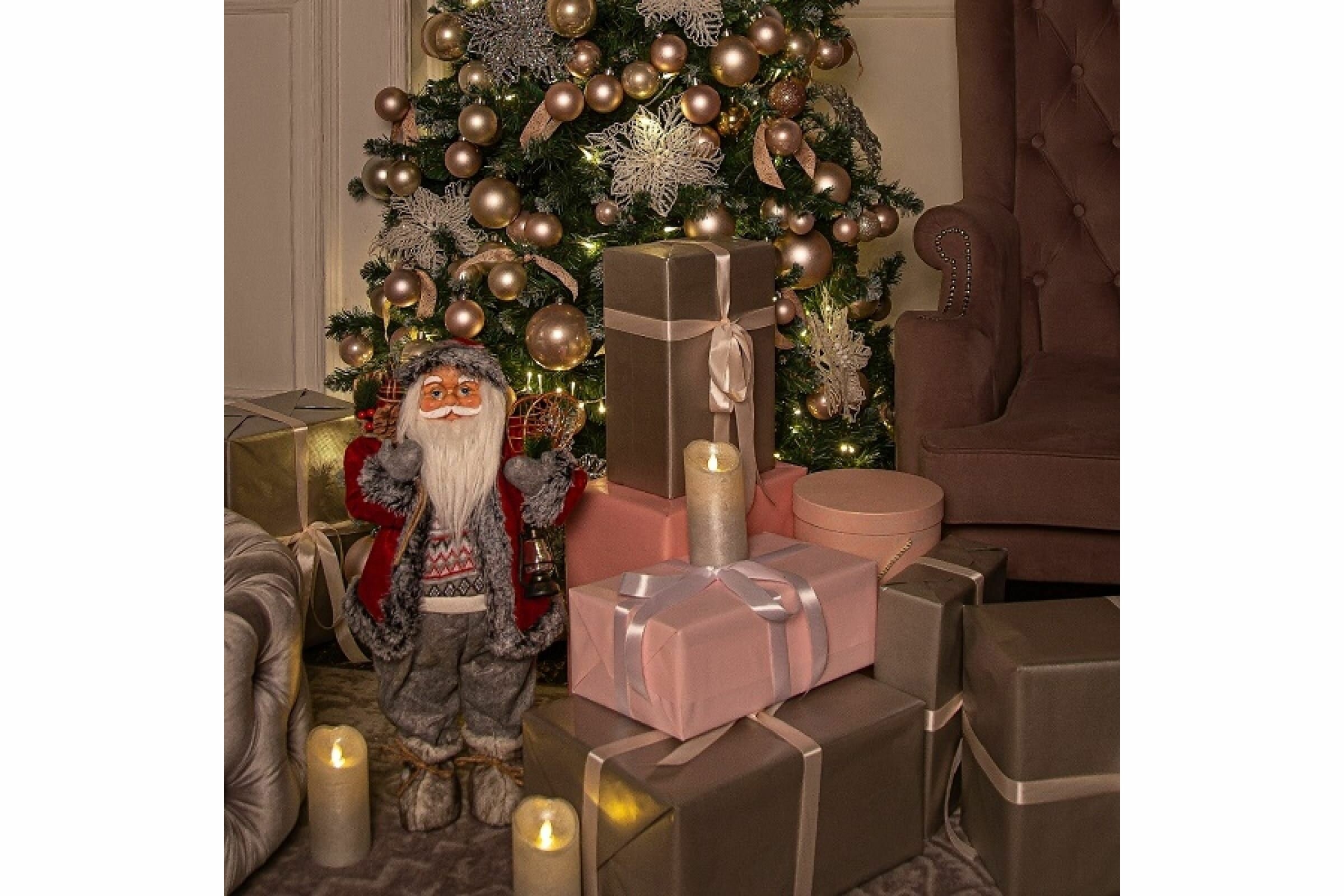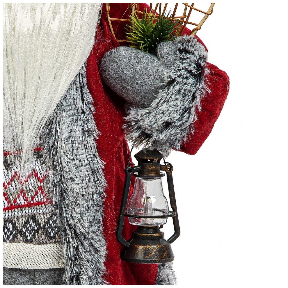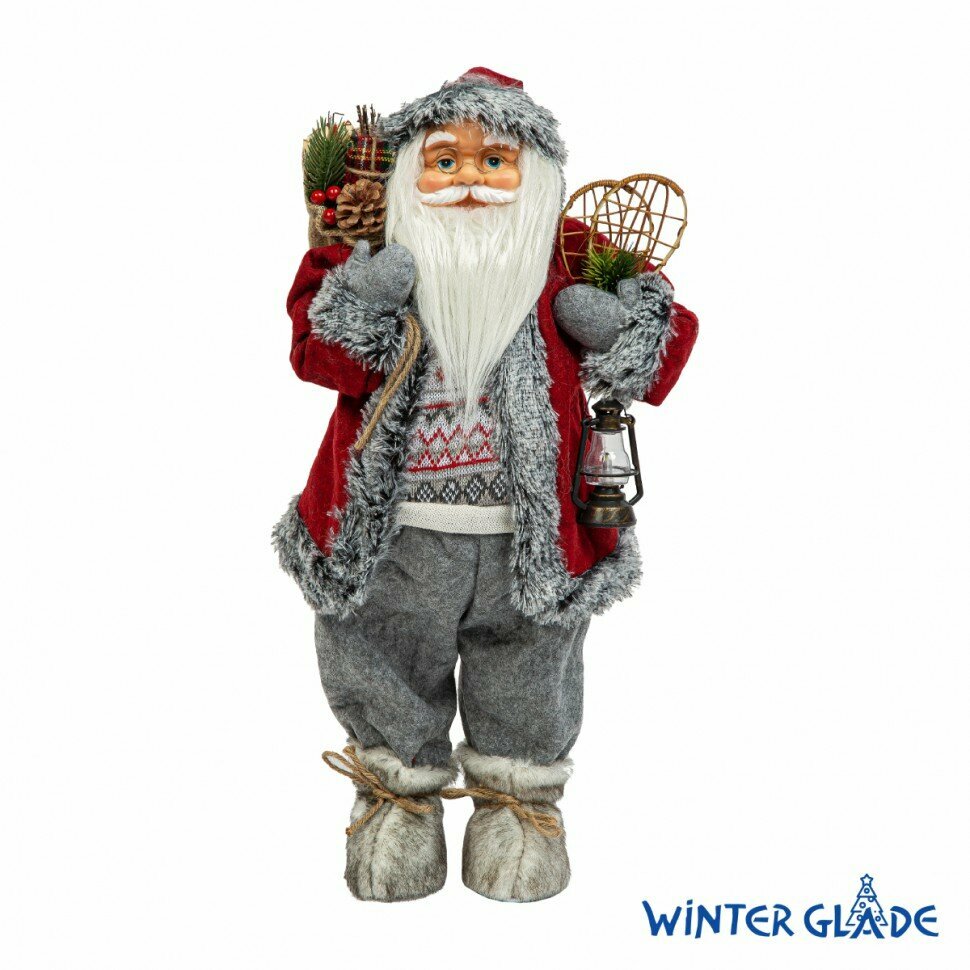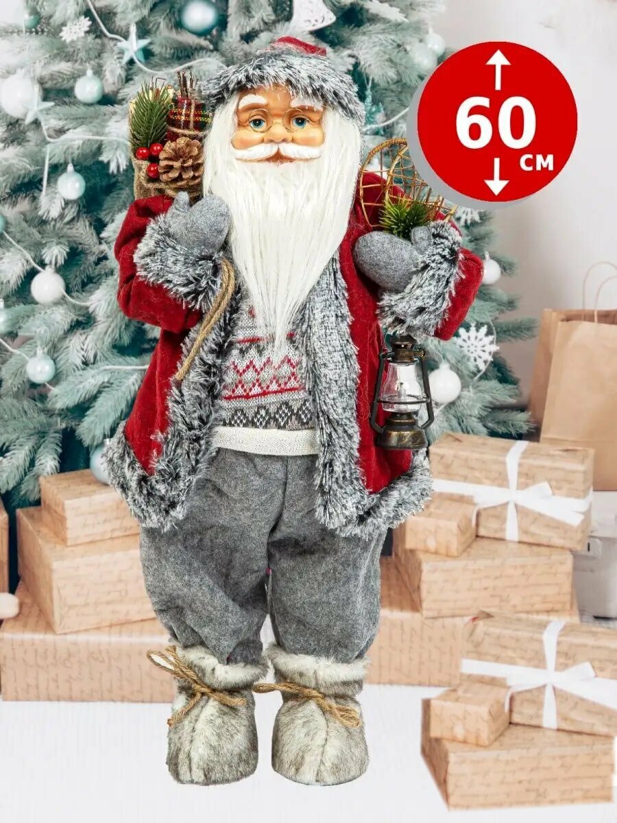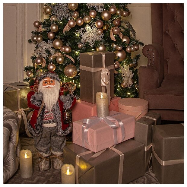 Дед Мороз под елку с мешком подарков и фонариком. Новогодние украшения всегда несут в себе волшебство и ожидание чуда. Создайте в своем доме атмосферу тепла, радости и веселья. Новогодняя фигурка - игрушка Дед Мороз под елку с мешком подарков высотой 80 см - это замечательный элемент декора и непременный атрибут украшения дома в преддверии празднования Нового Года и Рождества. И дети, и взрослые будут в восторге от этого нарядного Деда Мороза или Санта Клауса, который будет очень гармонично смотреться рядом с пушистой елочкой. Новогодняя фигура Деда Мороза выполнена из качественных материалов и детально проработана: доброе реалистичное лицо, длинная мягкая борода, роскошный праздничный костюм с пушистой оторочкой, мешок с подарками за плечами и многое другое… Кукла Деда Мороза устойчиво стоит и поэтому ее можно использовать не только как новогоднюю игрушку под елку, но и как самостоятельное украшение для дома или как праздничную фигурку. Акцент для любого новогоднего и рождественского декора: у декоративного камина в квартире и загородном доме, около праздничного стола, или на подоконнике в комнате. Символ наступающего Нового Года. Рождественская детская игрушка и для девочек и для мальчиков, прекрасный подарок родственникам, друзьям, коллегам и деловым партнерам.